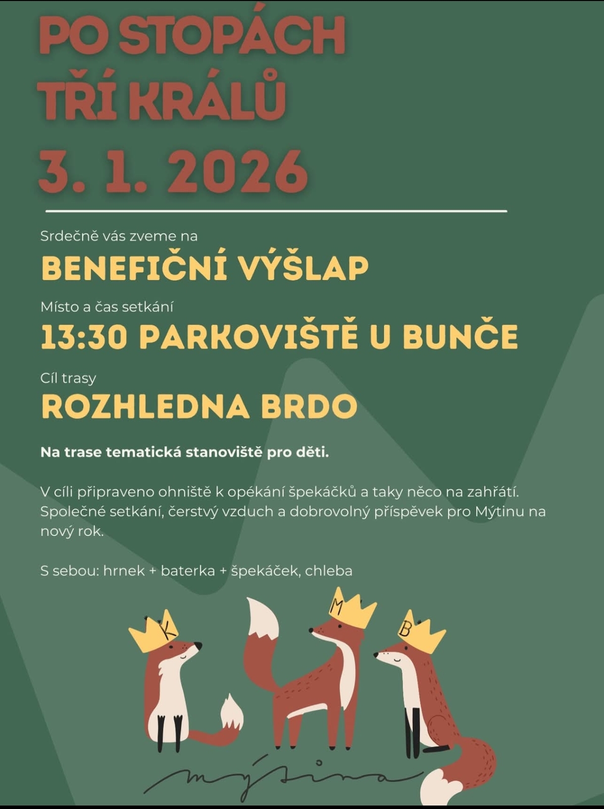 Na Mýtině chceme nabídnout rodičům a dětem z Uherského Hradiště a okolí prostor v centru města, kde mohou s dětmi smysluplně trávit volný čas, rozvíjet se prostřednictvím workshopů a besed nebo navazovat nové vztahy a sdílet své aktuální radosti i starosti u šálku dobré kávy.